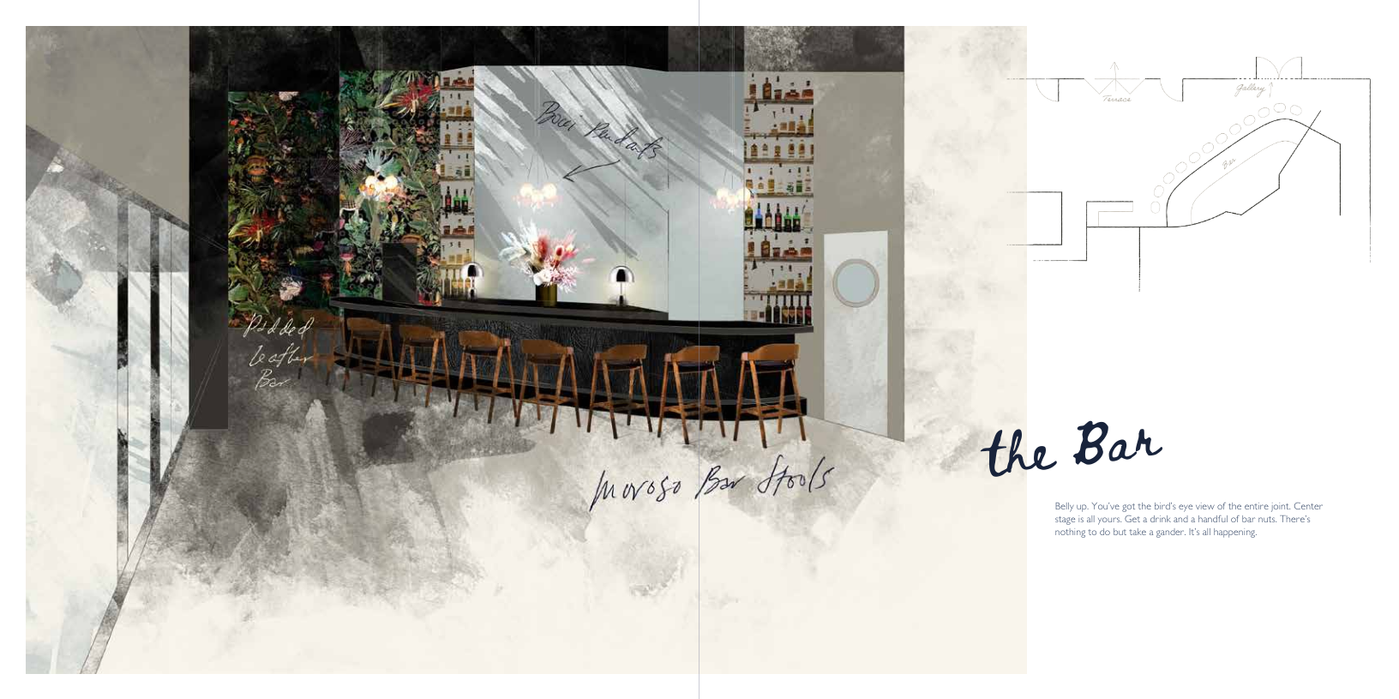 Each area was built with its own personality yet designed to feel part of a unified story. Three stories up, the Rooftop Terrace offers sweeping views of the city’s most beautiful residential architecture, The Chase Park Plaza, Jeanne Gang's 100's Building and The Albion. The Library brings warmth and conversation to life with built-in bookshelves, sectional couches + arm chairs, and coffee tables—a refined space that feels like home. The Gallery’s glass doors, soaring ceilings and curated art displays elevate every event with a sense of sophistication and storytelling. And at the heart of it all, the Bar connects each space—serving as both the physical and emotional center of the Maryland House experience.